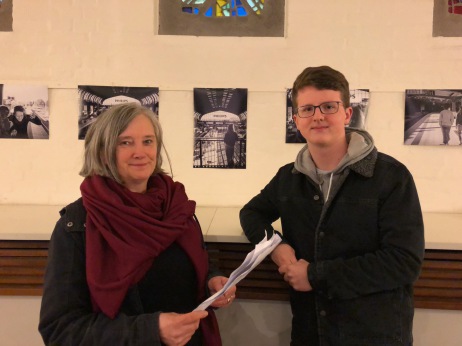 Liebe Damen und Herrn, liebe Gemeinde, lieber HP Ahrens, Elisabeth Kühn, lieber Hans, lieber Tom Linardatos, nebst Mitgliedern der Theatertruppe, die die Dargestellten auf den Bildern sind. Es sind Szenenbilder, die ihrerseits ein tragender Teil der Inszenierung eines Theaterstücks sind, das im und am Hamburger Hauptbahnhof spielt. Deshalb ein paar Worte dazu: